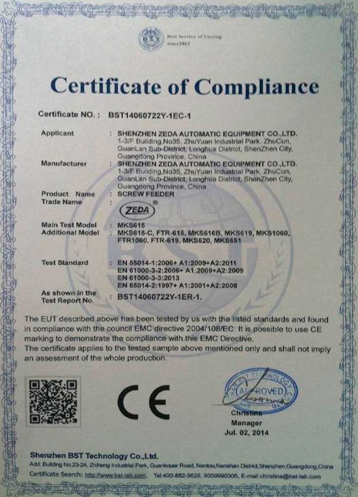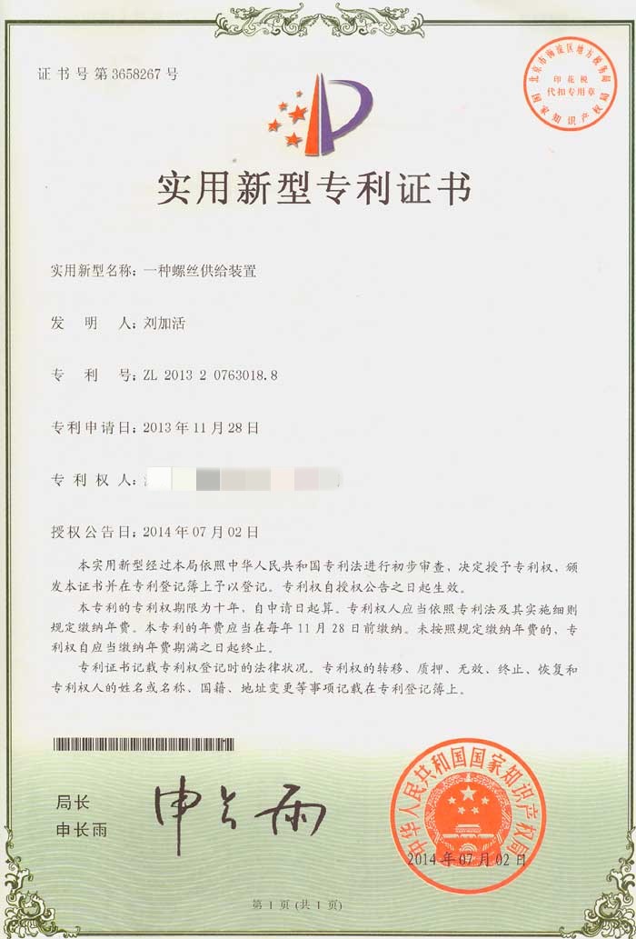 螺絲機專業(yè)生產(chǎn)廠家已通過ISO9001質(zhì)量管理體系認證